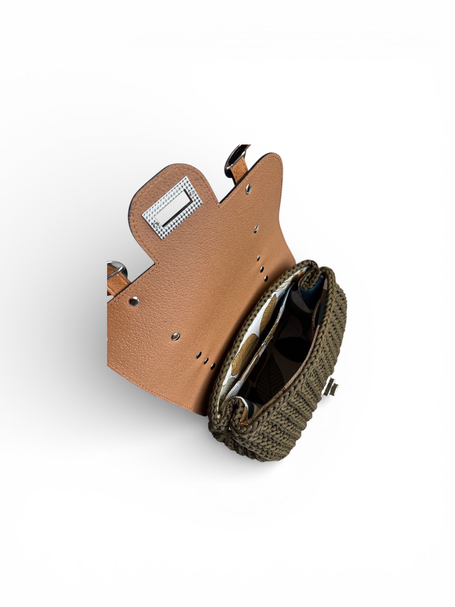 Crafted for the modern woman with an appreciation for timeless elegance, the Kelly in Khaki handbag seamlessly blends eco-friendly design with exquisite craftsmanship. Featuring a luxurious combination of premium ECO leather and intricately detailed crochet accents, this handbag offers both style and sustainability.